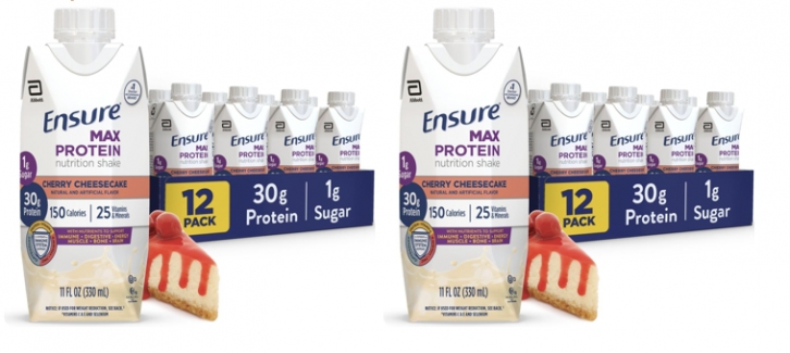 Two (2) Ensure Max Protein Shake | Cherry Cheesecake | Ready to Drink | 30g Protein for Muscle Health | 1g Sugar, 4g Fiber | 11 fl oz, 12 Pack (24 Total) w/Subscription + FS w/primeAmazon offers Two(2) Ensure Max Protein Shake | Cherry Cheesecake | Ready to Drink | 30g Protein for Muscle Health | 1g Sugar, 4g Fiber | 11 fl oz, 12 Pack (24 total) for with subscription + free shipping with Prime.