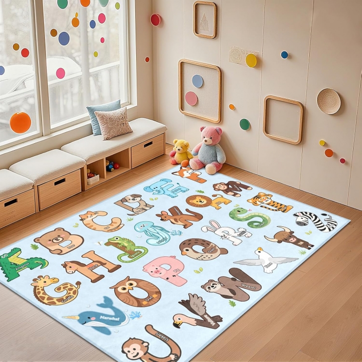 - Early Childhood Learning & Cognitive Growth: This alphabet area rug helps children stimulate their language abilities and boost their learning enthusiasm through fun, daily interaction. It acts as a visual learning tool that transforms any floor into an interactive early childhood education station. By combining play with study, this educational rug supports cognitive development, letter recognition, and sensory skills, encouraging to engage in independent play and active reading readiness.