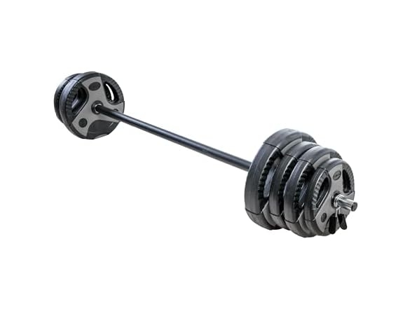 Product Description: Elevate your home gym workouts with the US Weight 43 LB Barbell Weight Set with 55" Adjustable Bar. This comprehensive set includes a 3-piece bar, two spring collars, two 11lb weights, two 5.5lb weights, and two 2.75lb weights, offering versatile options for strength training and muscle building. The cushioned bar features foam padding to reduce pressure on your hands and neck during lifting and squatting exercises, ensuring comfort and safety. The innovative design of the handled weights allows for various exercise uses, whether on the barbell or as independent dumbbells. Made from high-quality materials, the 3-piece barbell screws together securely, providing a durable and robust bar for all your workouts. It also unscrews easily for space-saving storage, making it an excellent addition to any home gym. With a contemporary design featuring grey and black high-density plastic shells, this set not only looks great but also ensures long-lasting performance. Backed by a limited 60-day manufacturer’s warranty, this weight set is your go-to training equipment for a comprehensive workout experience, perfect for building muscle and toning at home.