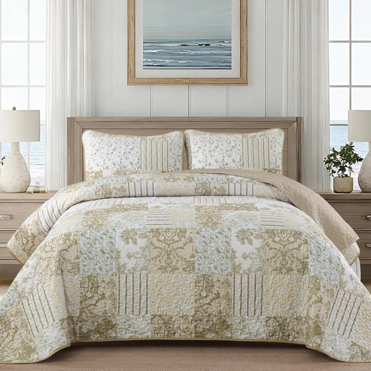 - 【High Quailty Material】Patchwork printed quilt set is made of high quality lightweight breathable microfiber polyester, it is soft and cozy even after washing. Perfect gifts choice for your families and friends.