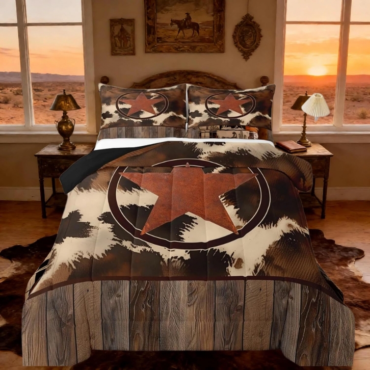 Amazon offers Feelyou Western Decor Comforter Set Full Size Texas Star Print Comforter Set for Boys Girls Teens Cow Fur Print Bedding Set Cowboy Duvet Set Room Decor Orange Brown Quilt Set for + free shipping with Prime. Note: Low stock! Product Description:- Unique Designs: Designed by professionals and various styles; whether you're looking for sleek minimalistic geometric shapes, modern gamer video game, or animal inspired designs, you will find a unique bedding set in our store