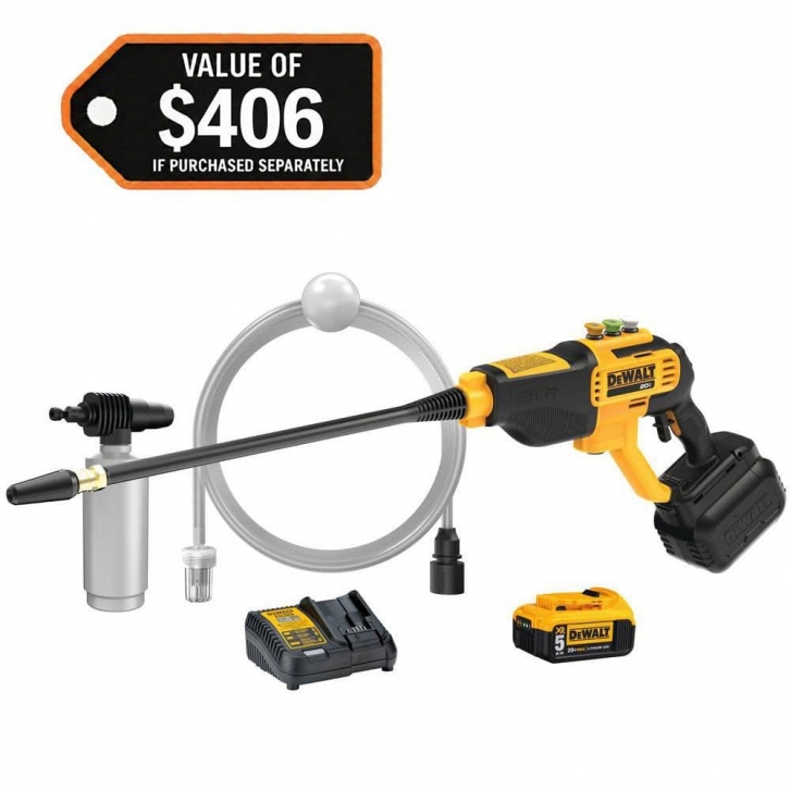 $199 DEWALT 20V MAX 550 PSI 1.0 GPM Cold Water Cordless Battery Power Cleaner with 4 Nozzles Kit with (1) 5 Ah Battery and Charger +FSHomedepot offers DEWALT 20V MAX 550 PSI 1.0 GPM Cold Water Cordless Battery Power Cleaner with 4 Nozzles Kit with (1) 5 Ah Battery and Charger for $199 with free shipping.