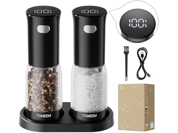 Woot offers Electric Salt and Pepper Grinder Set with LED Power Indicator, Fast Type-C Charging, 5-Level Grind Adjustment, Upgraded Capacity Salt and Pepper Shakers Set with Storage Base, LED Lighting for Kitchen for $14.99 (orig. $35.99). Free shipping for Prime Members. Product Features:【LED Power