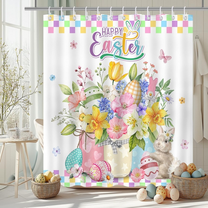 Mocsicka Easter Bunny Shower Curtain Easter Eggs Cute Rabbits Spring Floral Bathroom Shower Curtain Spring Easter Waterproof Fabric Shower Curtain Bathtub Decor with 12 Hooks 72 X 72 InchAmazon offers Mocsicka Easter Bunny Shower Curtain Easter Eggs Cute Rabbits Spring Floral Bathroom Shower Curtain Spring Easter Waterproof Fabric Shower Curtain Bathtub Decor with 12 Hooks 72 X 72 Inch for + free shipping with Prime.