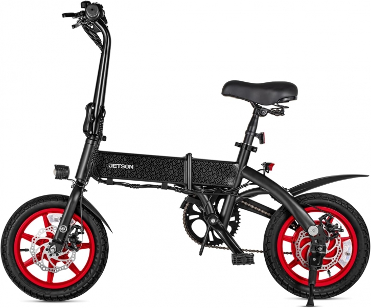 Apply Code: VIPOUTLETMARCH Product Description: Its foldable stem and frame make it a super compact option that can easily fit in a car trunk or be stored in a closet at home. A 350-watt motor will have riders hitting speeds of up to 15.5 mph engage the twist throttle and go while its battery allows for a 15-mile range when using full throttle but go even farther with pedal assist. The cruise control feature allows riders to coast along and enjoy the journey. Its 14” wheels come with all-terrain tires and ensure a stable ride, while an LED headlight and taillight provide plenty of visibility. The Jetson Arro Folding Electric Bike is recommended for ages 14 and up.