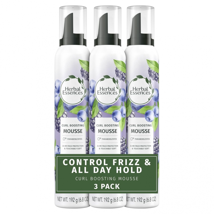 Herbal Essences Curl Boosting Mousse, Frizz Control for Curly & Wavy Hair, Long-Lasting Hold with Berry Scent, Paraben & Dye-Free, Cruelty-Free, 6.8 Fl Oz Each, 3 PackAmazon offers Herbal Essences Curl Boosting Mousse, Frizz Control for Curly & Wavy Hair, Long-Lasting Hold with Berry Scent, Paraben & Dye-Free, Cruelty-Free, 6.8 Fl Oz Each, 3 Pack for + free shipping with Prime.
