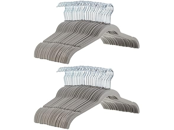 $19.99 Amazon Basics Non-Slip Shirt Clothes Hangers Velvet, Space-Saving Slim, Sturdy, Pack of 100, Gray/SilverWoot offers Amazon Basics Non-Slip Shirt Clothes Hangers Velvet, Space-Saving Slim, Sturdy, Pack of 100, Gray/Silver for $19.99 (orig. $43.27) + free shipping with Prim.