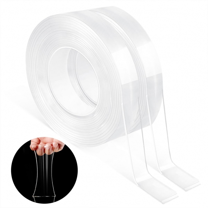Double Sided Tape Heavy Duty (Pack of 2, 0.5in*16.4ft) Clear Mounting Tape, Reusable & Removable, Non-Marking, Washable, Heavy Duty Adhesive for Wall Hanging, Photos, Carpet, AC