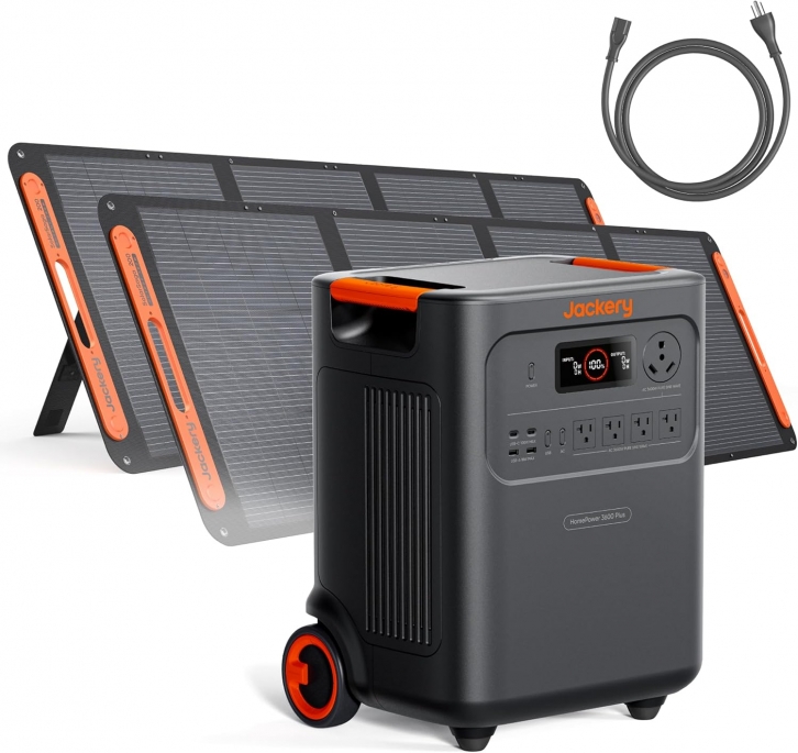 Jackery HomePower 3600 Plus Portable Power Station with AC Cable and 2X 200W Solar Panels, 3600W AC Output, 3584Wh Solar Generator, Expandable up to 21kWh, Essential Home Backup for Home Use
