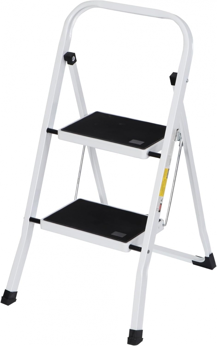Simpli-Magic Step Ladder, 2 Step Stool Ergonomic Foldable with Wide Anti-Slip Pedal, Multi-Use for Household, Kitchen and Office (300 LBS Capacity)