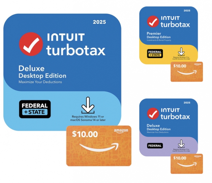 Intuit TurboTax Deluxe Desktop Edition 2025, Federal Tax Return [PC/Mac Download] + Amazon Gift Card