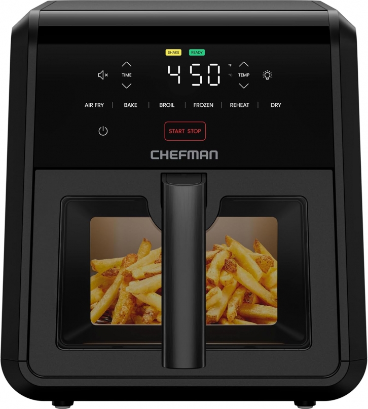 Chefman Air Fryer TurboFry 7-Qt, 6-in-1 High-Powered 450°F Cooking for Crispier Results, Compact Space-Saving Design, Air Fry, Bake, Broil, Reheat, Dehydrate, Defrost, Fast & Even Cooking – Black +