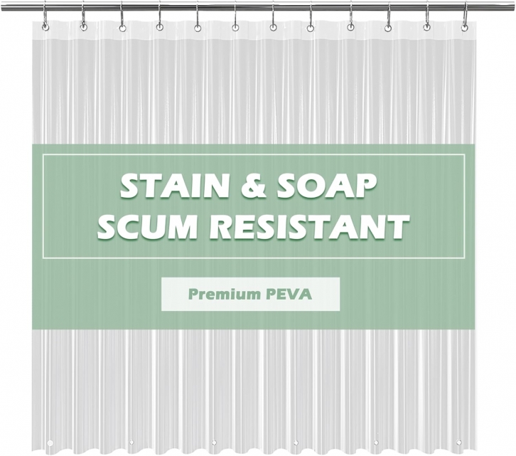 EHZNZIE Clear Shower Curtain Liner Light Weight PEVA, Shower Liner 72x72 Inches, Waterproof, No Chemical Smell with 12 Rust Proof Metal Grommets Holes for Bathroom Shower Curtain