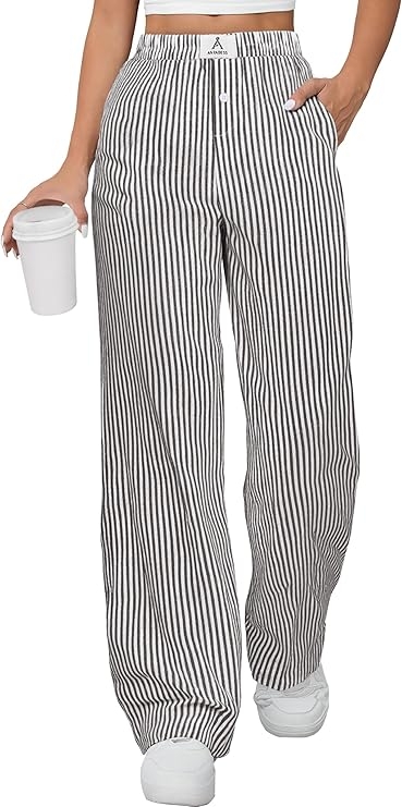 ANRABESS Womens Striped Gingham Pants 2026 Pajama Lounge Boxer Pants Cute Comfy PJ Bottoms with Pockets Y2K Plaid Outfits