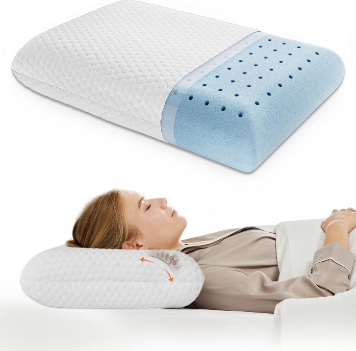 DUMOS Memory Foam Pillows for Sleeping, 1 Pack Bed Pillows for Adults with Washable Cover and Breathable Mesh, Gel Cooling Pillow for Back and Side Sleeper Support, White
