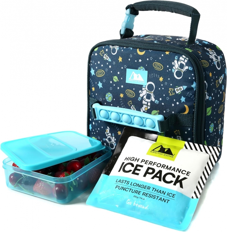 Arctic Zone Pop-it Kids Lunch Box Combo with Sensory Pop Handle, 210g Ice Pack, and Sandwich Container, Space Odyssey