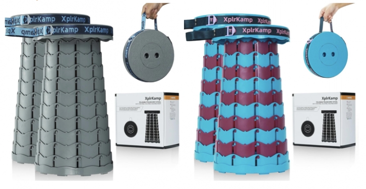 Retractable Folding Stool - Heavy Duty 400 lb Collapsible Portable Stool for Camping, Hiking, Fishing, Indoor/Outdoor with Non-Slip Base and Lightweight Design (Blue Purple, 2-Pack)