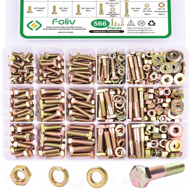 FOLIV 566Pcs Heavy Duty Bolts and Nuts Assortment Kit AC